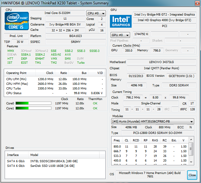 دستگاه مورد بررسی ما دارای پردازنده Core i5-3320M است، پردازنده اصلی اینتل Ivy Bridge دو هسته ای و یک کلاک اسمی 2.6 گیگاهرتزی است. از طریق توربو بوست 2.0 ، CPU می تواند کلاک را تا 3.1 گیگاهرتز (2 هسته ای) و 3.3 گیگاهرتز (در 1 هسته ای) به ترتیب افزایش دهد؛ با توجه به اینکه ذخیره مصرف انرژی و دما نیاز است. i5-3320M با جدیدترین فرایند 22 نانومتری اینتل با ترانزیستورهای Tri-Gate ساخته شده و دارای TDP مشخص 35 واتی است.