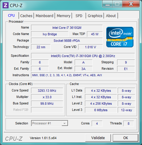 Cpu Core i7 2760qm (6mb cache-8 core ) 2nd generation