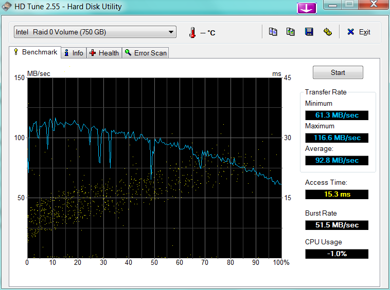 در حالت بیکار، صدای نویز از HDD ناشی می شود: تقریبا بلند حدود 32.7 دسی بل (A). با این حال، HDD تنها زمانی قابل شنیدن است که کاربر گزینه “Fan always on” را در تنظیمات بایوس خاموش کرده باشد.  در غیر اینصورت، سیستم خنک کننده از دستگاه ذخیره سازی با 34.4 دسی بل (A) ثابت، (حتی در زمان دسترسی HDD clatters به داده ها 33.5 دسی بل است) پر سر و صداتر می شود.