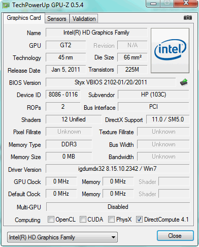تراشه گرافیکی HD Graphics 3000  با پردازنده، یکپارچه شده و مسئول نمایش تمامی گرافیک هاست. دو شکاف حافظه اصلی RAM در لپ تاپ وجود دارد که یکی با یک ماژول 2048 مگاباتی اشغال می شود، در زمانی که که دیگری خالی باقی می ماند. BIOS نوت بوک مرکز کنترل است که کاربر می تواند انواع ویژگی ها و عملکردها مانند وب کم، کارت LAN، Multi CPU on/off, Hyper Threading on/off یا عملکردهای خاص (USB Charge off, when % capacity) پیکربندی کند. تعداد بسیار کمی از تولیدکنندگان به کاربران، چنین کنترل وسیعی بر روی دستگاه خود می دهند.