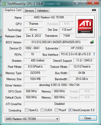 • گرافیک:AMD Radeon HD 7570M – 1024 MB, Core: 500 MHz