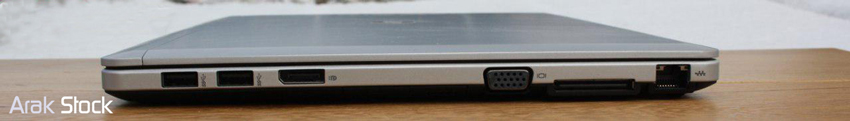 سمت راست دستگاه: 2 x USB 3.0, DisplayPort, card reader, VGA, docking port, Ethernet RJ-45