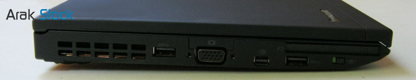 سمت چپ دستگاه: 2x USB 3.0, VGA-out, Mini DisplayPort, ExpressCard 54mm, Wireless switch