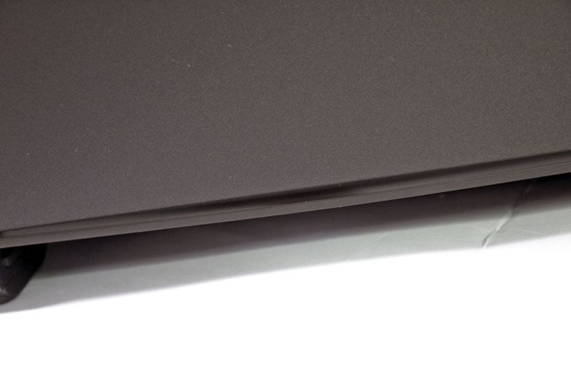 در سمت راست، بخشی از قسمت استراحت مچ دست (کنار تاچ پد زیر کیبورد) که کارت خوان هوشمند و درایو نوری قرار گرفته است به سادگی فشرده می شود. بین لولاهای صفحه نمایش تغییرنیافته، قاب صفحه نمایش کاملا قابل انعطاف است، با توجه به نظر قبلی ما درباره کیفیت برتر این مدل ها. فضای بالای باتری نیاز به بهبود دارد، زیرا در زمانی که باتری در جای خود نیست، می تواند به راحتی با نیروی جزئی فشرده شود.