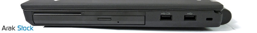 Right: smart card reader, optical drive, 2 x USB 2.0, Kensington lock