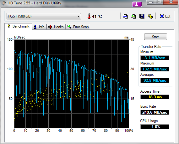 از لحاظ عملکرد سیستم، پیکربندی مدل مورد بررسی ما از هارد دیسک معمولی (بدون حافظه SSD) و RAM تک کاناله رنج می برد. حالت دو کاناله با یک ماژول رَم دوم فعال می شود که منجر به بهبود عملکرد در حدود 15 تا 20% می شود. هارد دیسک معمولی یکی از سریع ترین مدل های موجود در نوت بوک هاست. اما هنوز هم در مقایسه با SSDها، زمان دسترسی و حداکثر سرعت انتقال قابل رقابت با آنها نیست.