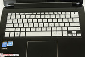 صفحه کلید Chiclet (27.5 در 10 سانتیمتر) جابجایی کم عمق با پاسخ محکم اما سبکی را برای کاربر فراهم می کند. کلیدها نسبتاً بی صدا هستند ، اما فاقد بازخورد لمسی مانند صفحه کلید استاندارد AccuType در نوت بوک های لنوو هستند. کلیدهای جهت نما، کوچک با بازخورد نادرست حتی تجربه ی بدتری فراهم می کنند. هیچ کلید اختصاصی چندرسانه ای به جز دکمه ی تنظیم میزان صدا در لبه نوت بوک وجود ندارد. ما Asus را به دلیل وجود نور پس زمینه برای صفحه کلید در چنین مدل ارزان قیمتی ستایش می کنیم. برخلاف مدلهای اخیر یوگا ، کلیدها در حالت تبلت به طور خودکار فشرده نخواهند شد.