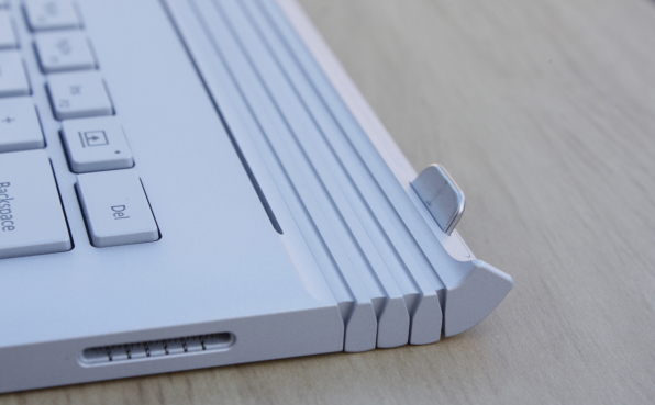 یکی از اهداف اصلی یک نوت بوک جداشدنی، جایگزینی تبلت و نوت بوک کاربر با یک راه حل 2 در 1 است. نتیجه معمولاً با کیفیت ضعیف، صفحهکلید ضعیف، صفحهنمایش سنگین، ویژگیهای کمتر و عملکرد آهستهتر از حد مطلوبی است زیرا سختافزار اصلی باید در قالب تبلت مناسب باشد.سرفیس بوک به راحتی یکی از بهترین جداشدنی های موجود در بازار است. بسیاری از این نگرانی ها را مستقیماً با کیفیت ساخت عالی از بالا به پایین، صفحه کلید با نور پس زمینه که نسبت به بسیاری از اولترابوک ها احساس بهتری دارد، صفحه نمایش نسبتا سبک وزن با حاشیه باریک و عملکرد نوت بوک مانند GPU منحصر به فرد قابل اتصال Nvidia برطرف می کند. جدا از چند اشکال در هنگام اتصال و جدا کردن تبلت، همه چیز در مورد سرفیس بوک به طرز باورنکردنی خوب کار می کند و جای شکایتی وجود ندارد. لولای تکیه گاه معایب خود را عمدتاً از نظر زیبایی شناختی دارد، زیرا نوت بوک به معنای سنتی هرگز نمی تواند کاملاً بسته شود، اما از نظر عملکردی نسبت به لولاها و آهنرباهای سوئیچ قفل که معمولاً در سایر دستگاه های جداشدنی یافت می شوند مانند Transformer Book Chi یا توشیبا پورتژ Z20t. برای یک دستگاه 1500 دلاری، این سخت افزار با کیفیت و بدون گوشه های برش است.
